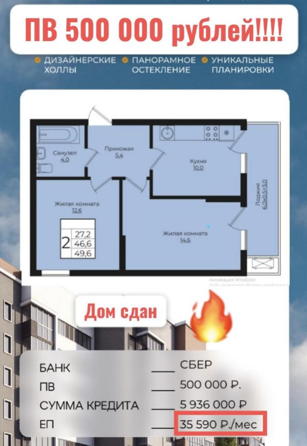 ‼️ СРОЧНО‼️ Открылась 2 к квартира с МИН. ПВ Дом сдан Отделка базовая ➡️ https://t.me/nedvizhimostkrdd