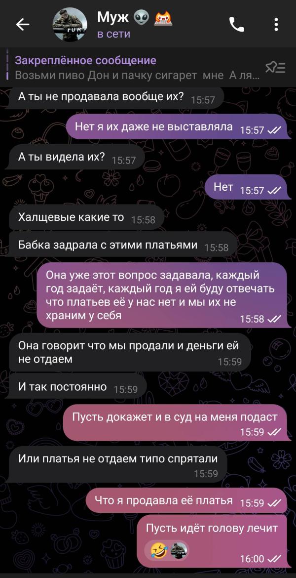 Дано : бабуля мужа как-то в 2022 году сказанула, что хочет привезти нам платья на продажу через авито. Ну сказала и всё. Платьев она так и не привозила. Но мозги делает уже почти 4 года, что мы их от неё спрятали , продали и деньги ей не отдаём. И теперь мы с мужем последние 4 года всегда вруны, аферисты-мошенники.