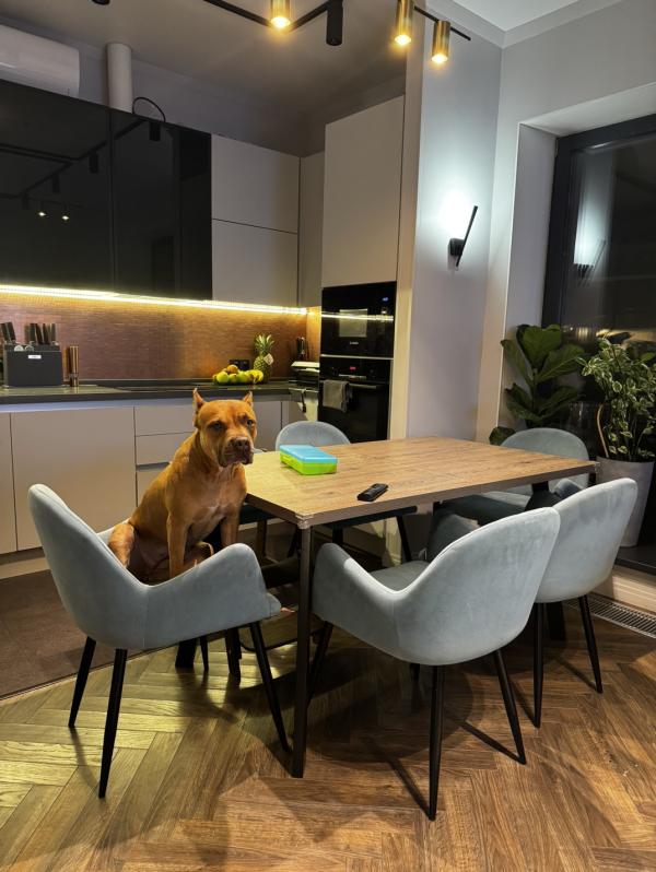 Какая у вас классная кухня и собака. Посмотрела предыдущий пост, это поймут только те у кого есть собака, я раньше тоже смотрела фото и видео как целуют собаку в морду , и думала как же не боятся , ведь может вцепиться это же животное. Но после того как завела собаку у меня и не такие фото были, это же твоя собака, ты ее знаешь , воспитываешь своими руками , понимаешь ее с полувзгляда. Мой сын в 4 месяца вцепился ей в нос сам, с тех пор я вообще перестала их разграничивать они спали вместе , лежали на полу , на кровати. Под моим чутким контролем , но вместе. К сожалению рак забрал нашу собаку, прошел уже год, сын до сих пор ее вспоминает и ждёт , собирает кидать ей мячи , гулять по лесу. Не обижайтесь, люди просто такое не понимают