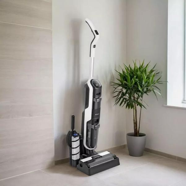 Моющий пылесос для дома вертикальный беспроводной DEERMA VX96W (Серый), с контейнером, мощный, аккумуляторный, ручной с влажной и сухой уборкой