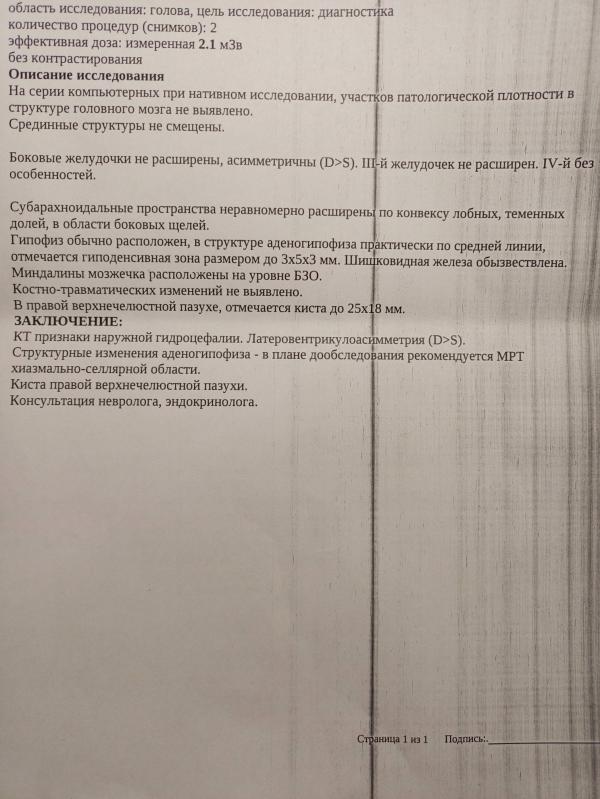 Девочки, добрый вечер! Может есть невролог или кто разбирается, помогите пожалуйста разобраться в результате КТ!🙏 К неврологу попаду не скоро... За день всю себя извела, вдруг что-то страшное😥