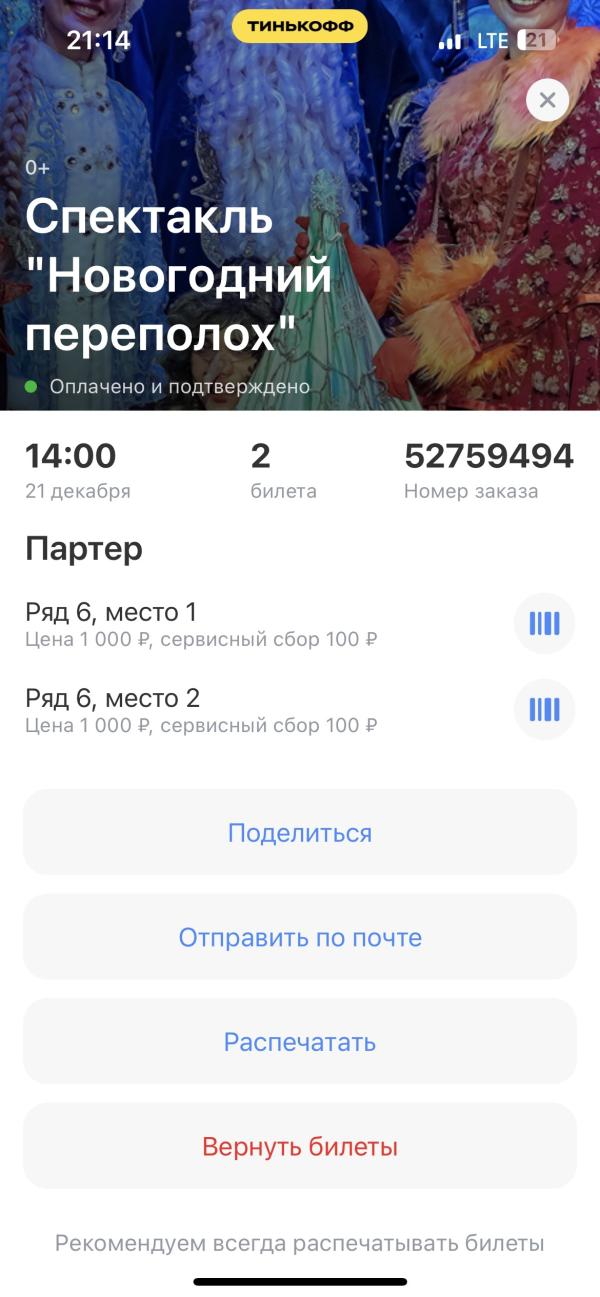 Продам 2 билета в театр у Нарвских ворот за 1500 рублей