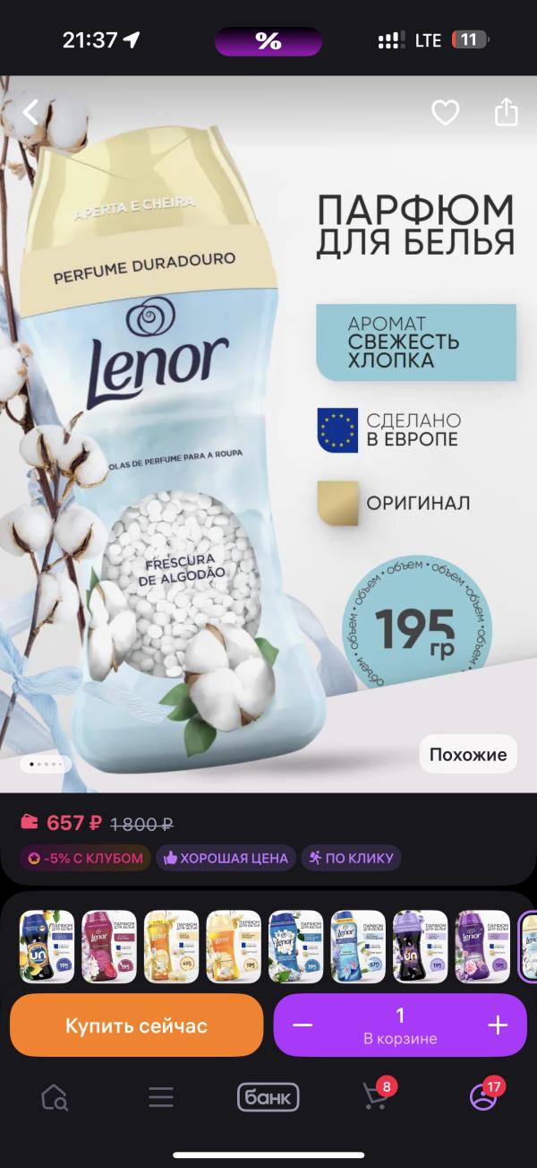 Где большой выбор этого кондиционера в гранулах? Не могу слепо заказать,мне нужно нюхать🤣