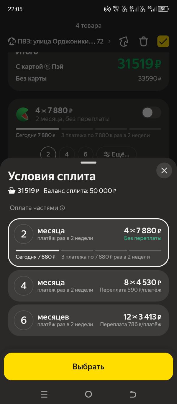 У меня есть супер сплит от Я.Маркет, она идет как кредитка.