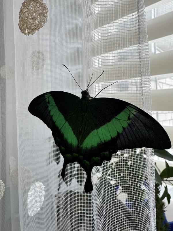 Дома не было, но мы ходили на выставку, там бабочки в свободном полёте были, можно было на руки взять, рассмотреть. Было прикольно)