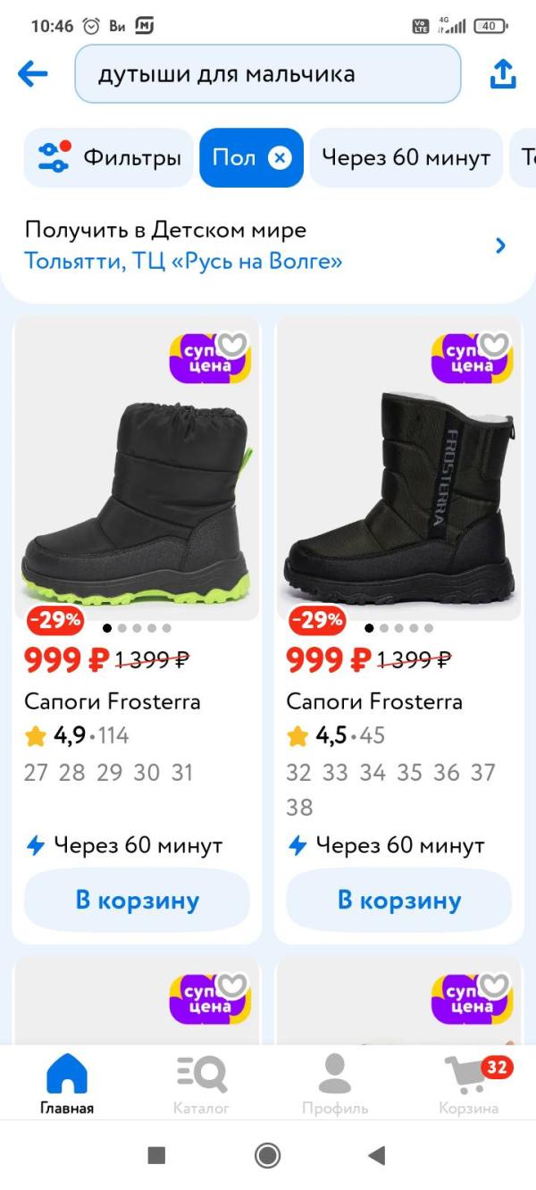 Подскажите, в каких магазинах Тольятти есть хороший выбор зимних дутышей на детей? Чтобы на широкую стопу, но узкую ногу смогли подобрать что-то. Сыну 5 лет.