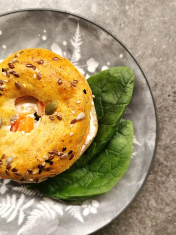 творожный бейгл с рыбой🥯 (*готовлю их заранее, можно замораживать)
