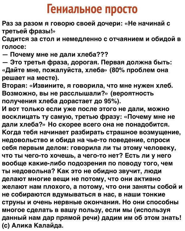 Нашла интересный пост в fb... Вообще тема актуальная как мне кажется и дурацкие убеждения прошлых веков железно сидят в наших головах. Насчёт идеальных хозяек, мам, жён. Не надо быть идеальной, просить о помощи смело! До мужа вообще может и не доходить как сильно ты устаёшь. Оставить его на день «на хозяйстве» с детьми, а самой - отдыхать. Например. Берегите себя, девочки! Далее пост.