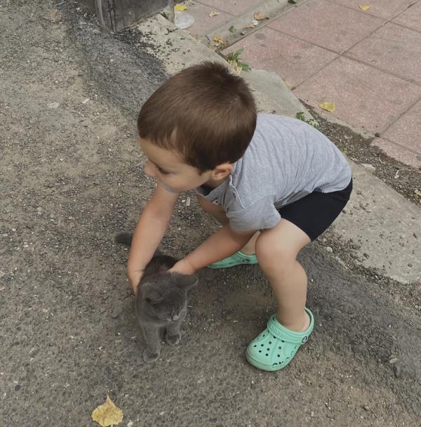 Пообещала детям мороженое и погулять во дворе. Вышли, направляемся в магазин, за нами увязался этот котёнок. Я говорю сыну: «может котёнок тоже хочет мороженое, давай ему тоже возьмём, пусть с нами на скамеечке посидит, покушает»