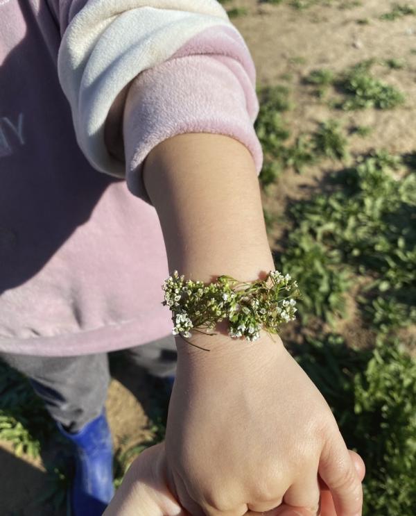 Недавно знакомая отправила рилс где мама детям сделала такие браслетики, мы сразу же решили повторить)) жаль только не было красивых цветов в степи, сделали из того что есть 😹