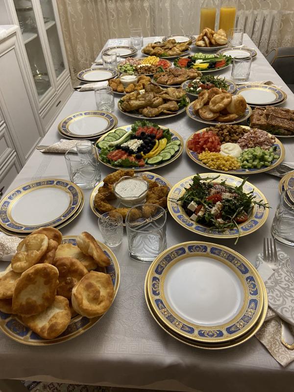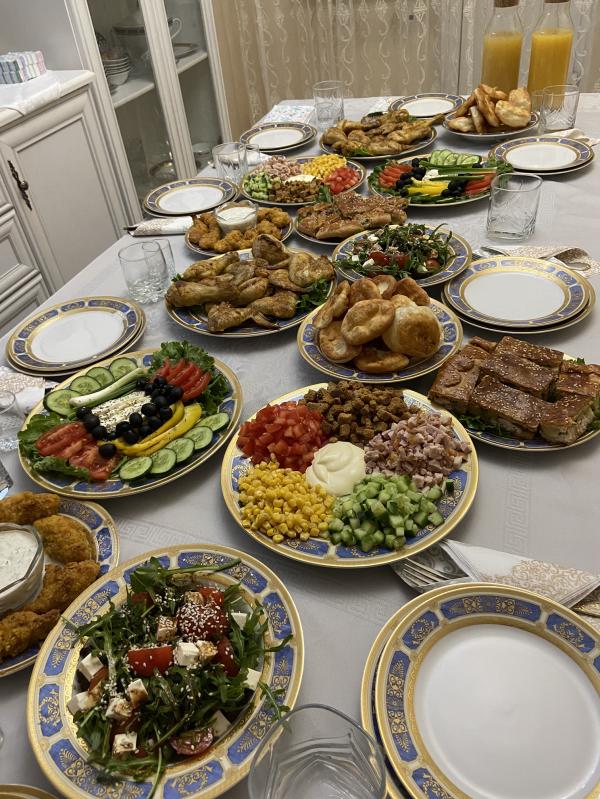 Тут все делятся своим накрытыми столом) вот мой) на горячее беш и плов)